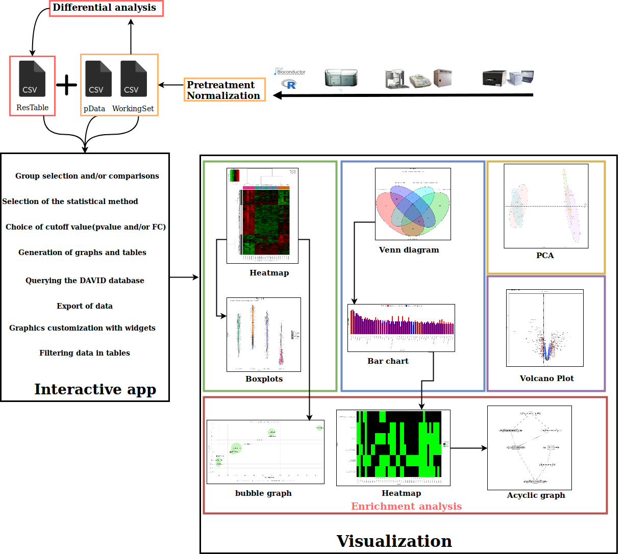 In order to allow biologists to explore their own datasets in autonomy and generate graphical representations, we have deployed a turnkey solution built with the shiny framework.